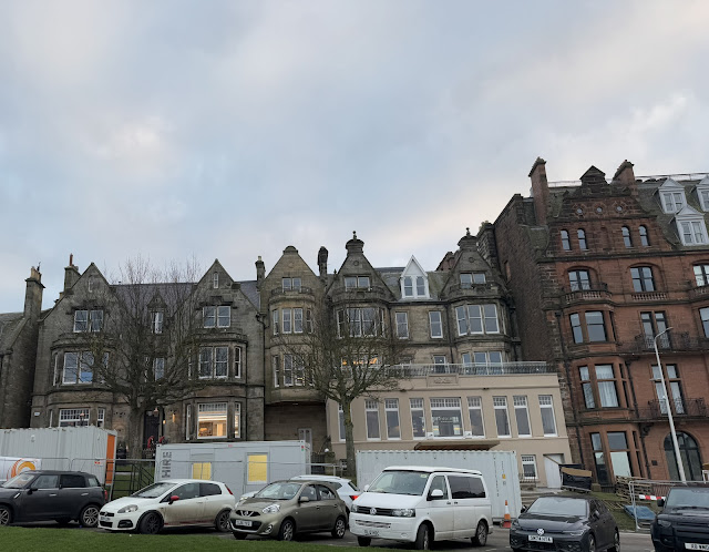 The new hotel down by the golf course has had workmen beavering away through the weekend. This morning the lights are all blazing away and finishing touches are being made to the restaurant(s) and bar. The work seem to be going on 24/7 which is unusual in Scotland.